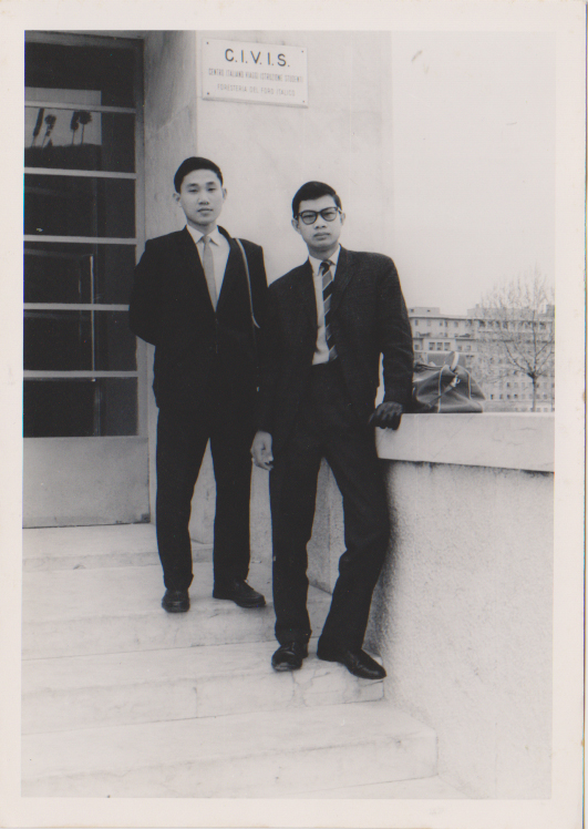 ถ่ายภาพกับ ดร.วิจิตร สุพินิจ (ผู้ว่าการธนาคารแห่งประเทศไทย ลำดับที่ 16 ในเวลาต่อมา) เมื่อครั้งไปศึกษาที่ประเทศอังกฤษ (นักเรียนทุนธนาคารแห่งประเทศไทยรุ่นแรก)