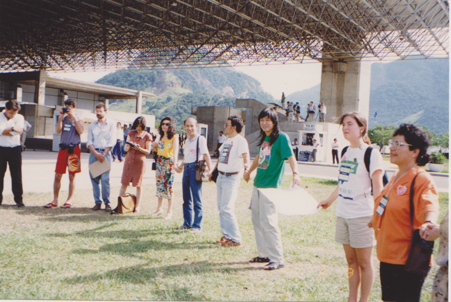 ถ่ายภาพกับคุณชาลินี เนียมสกุล (จากองค์การ Ibsram) และ ดร.สุรพล สุดารา (นักวิทยาศาสตร์ด้านสิ่งแวดล้อมที่มีผลงานดีเด่นและมีชื่อเสียงในระดับนานาชาติ จากจุฬาลงกรณ์มหาวิทยาลัย) เมื่อครั้งไปร่วมประชุม Global Forum ซึ่งเป็นงานที่กลุ่มองค์กรพัฒนาเอกชน (เอ็นจีโอ) จากทั่วโลกร่วมกันจัด คู่ขนานกับ Earth Summit ณ กรุงริโอ เดอ จาเนโร ประเทศบราซิล โดยมี Tree of Life เป็นสัญลักษณ์หนึ่งในงาน