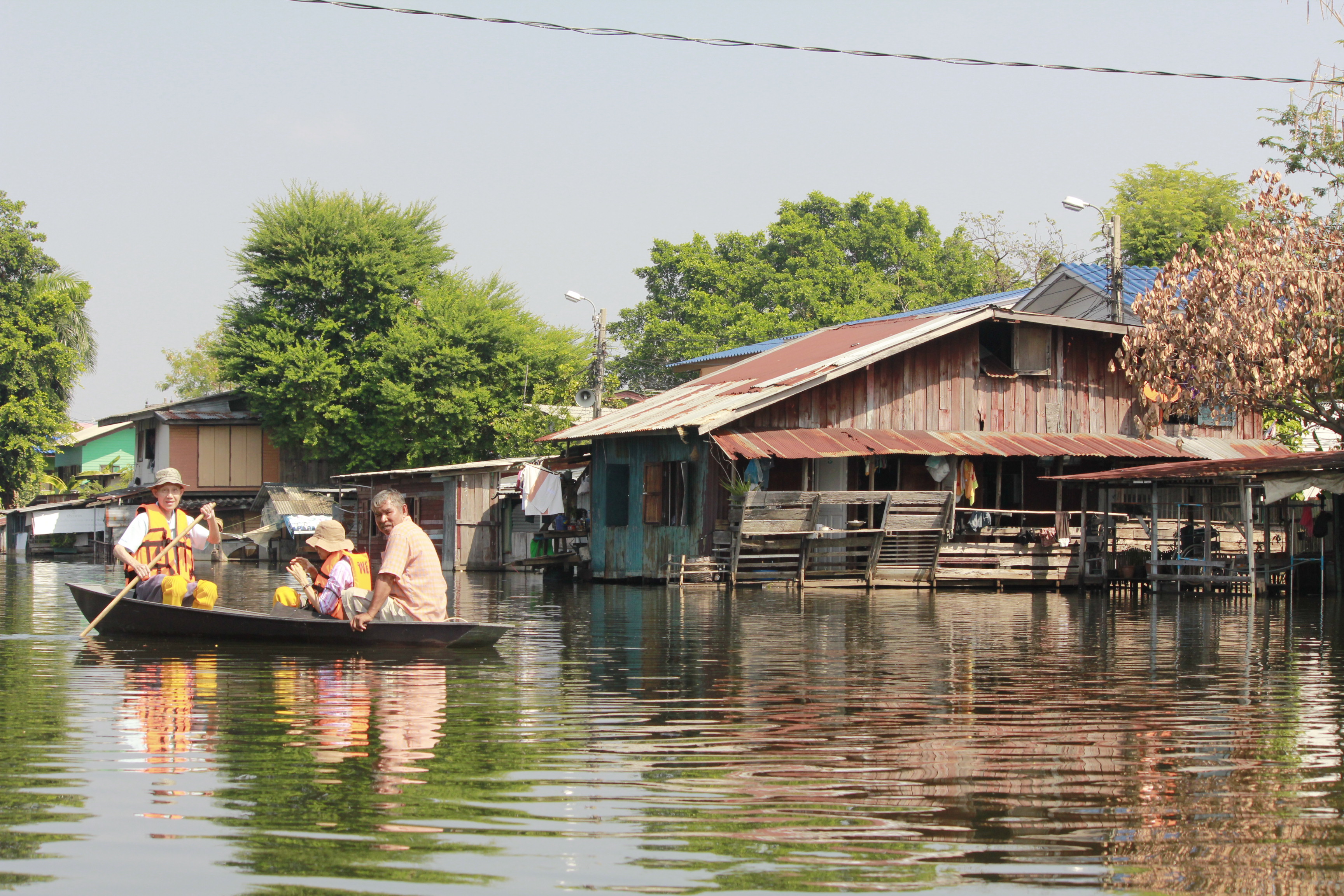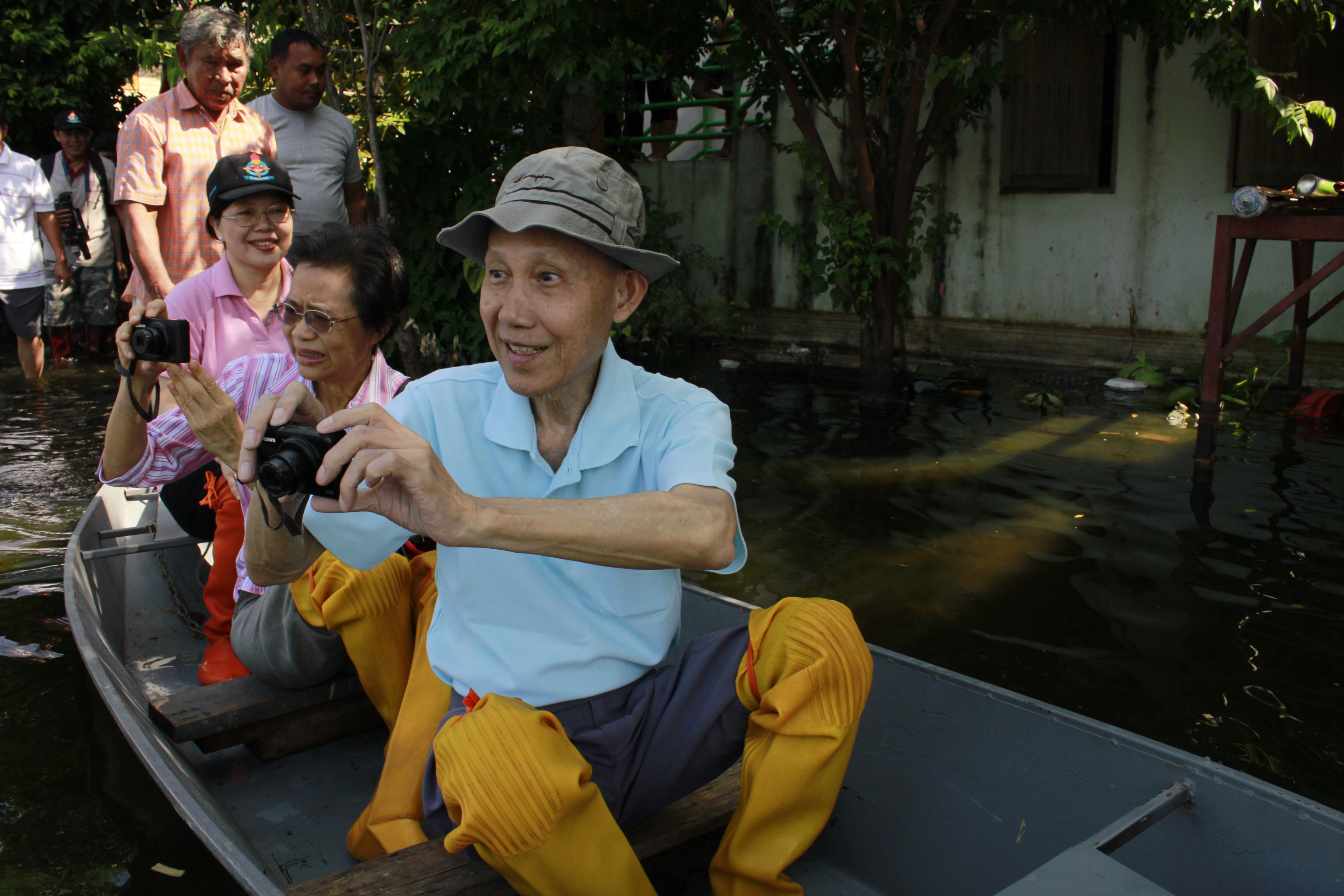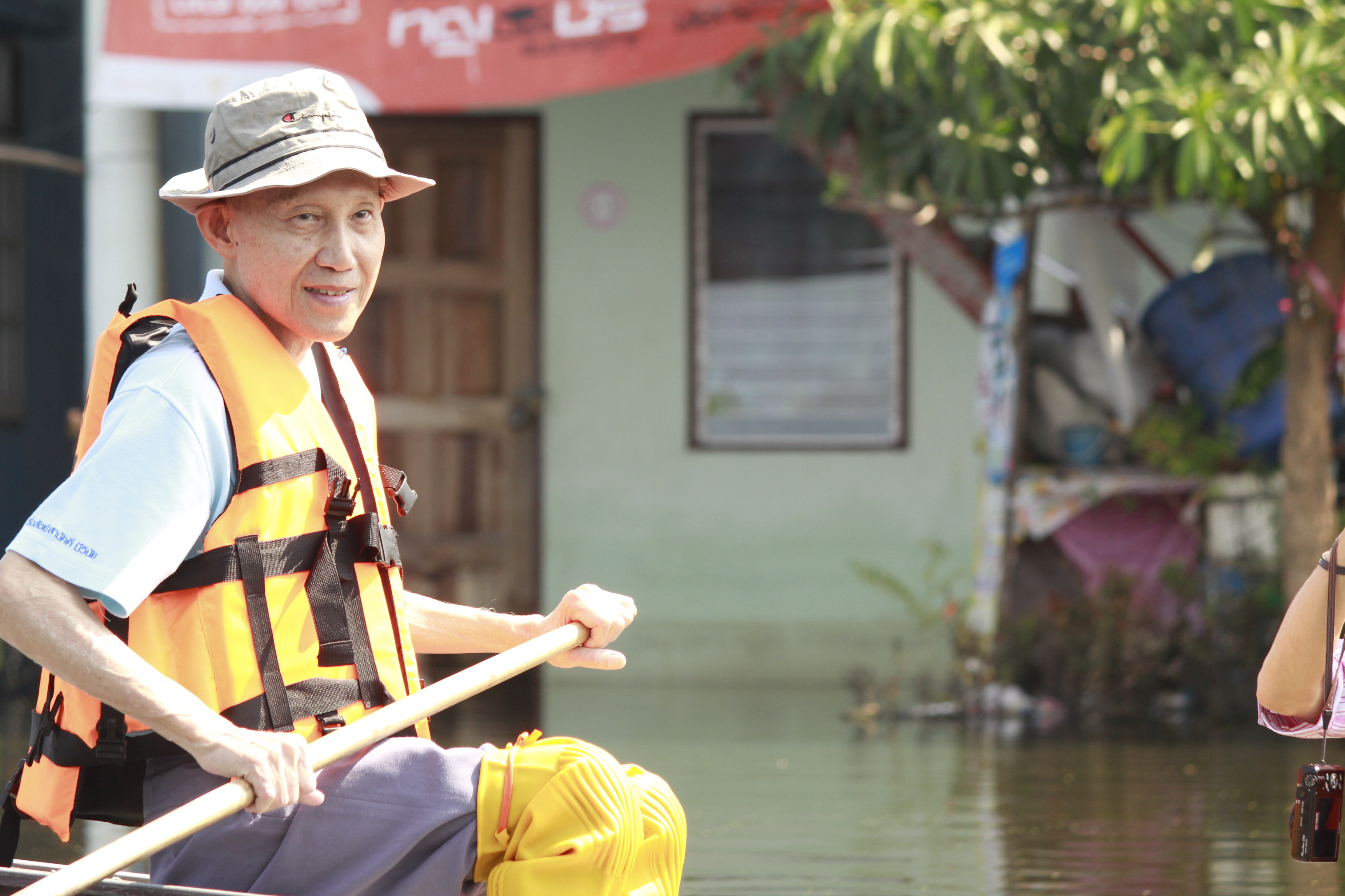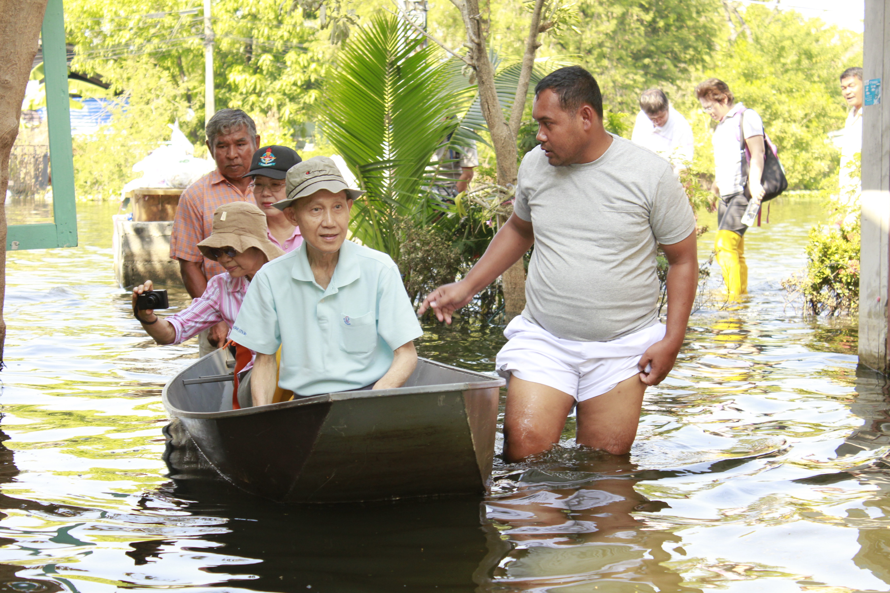 อ.ไพบูลย์ วัฒนศิริธรรม ในฐานะประธานมูลนิธิหัวใจอาสา พร้อมด้วยคุณหญิงชฎา วัฒนศิริธรรม ผู้นำชุมชนตำบลท่าอิบุญ อ.หล่มศักดิ์ จ.เพชรบูรณ์ นางทิพย์รัตน์ นพลดารมย์ ผู้อำนวยการ พอช. และเจ้าหน้าที่สถาบันพัฒนาองค์กรชุมชน (องค์การมหาชน) หรือ พอช. เยี่ยมให้กำลังใจชาวชุมชนบางบัว เขตบางเขน กรุงเทพมหานคร ในเหตุการณ์มหาอุทกภัย โดยนำกระแสพระราชดำรัส "เศรษฐกิจพอเพียงจะช่วยให้โลกพ้นวิกฤตได้" พร้อมด้วยหนังสือ-บทความเกี่ยวกับการจัดการภัยพิบัติ การป้องกันและการเตรียมรับมือ แพไม้ไผ่ น้ำดื่ม และอีเอ็มบอล ไปมอบให้ด้วย