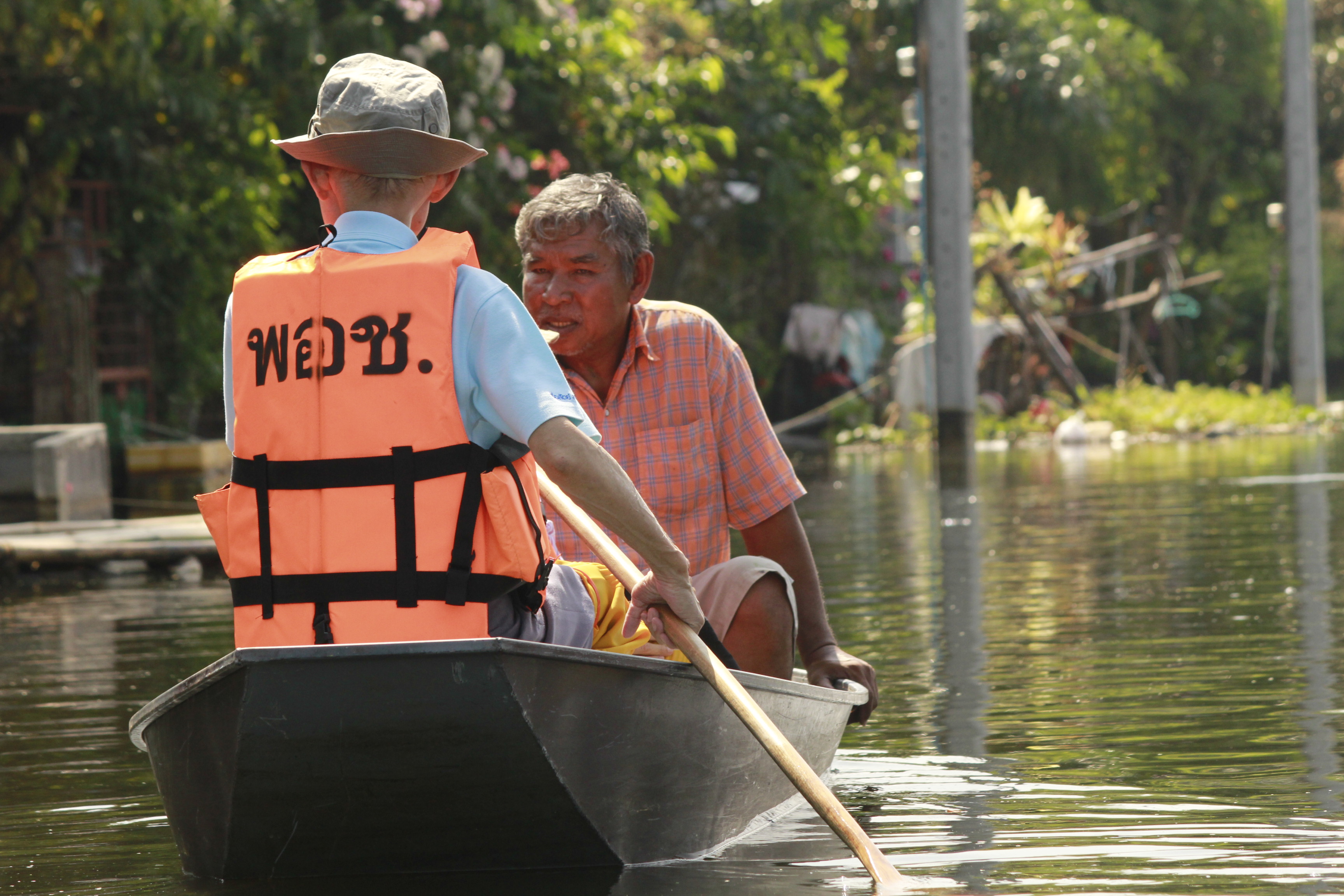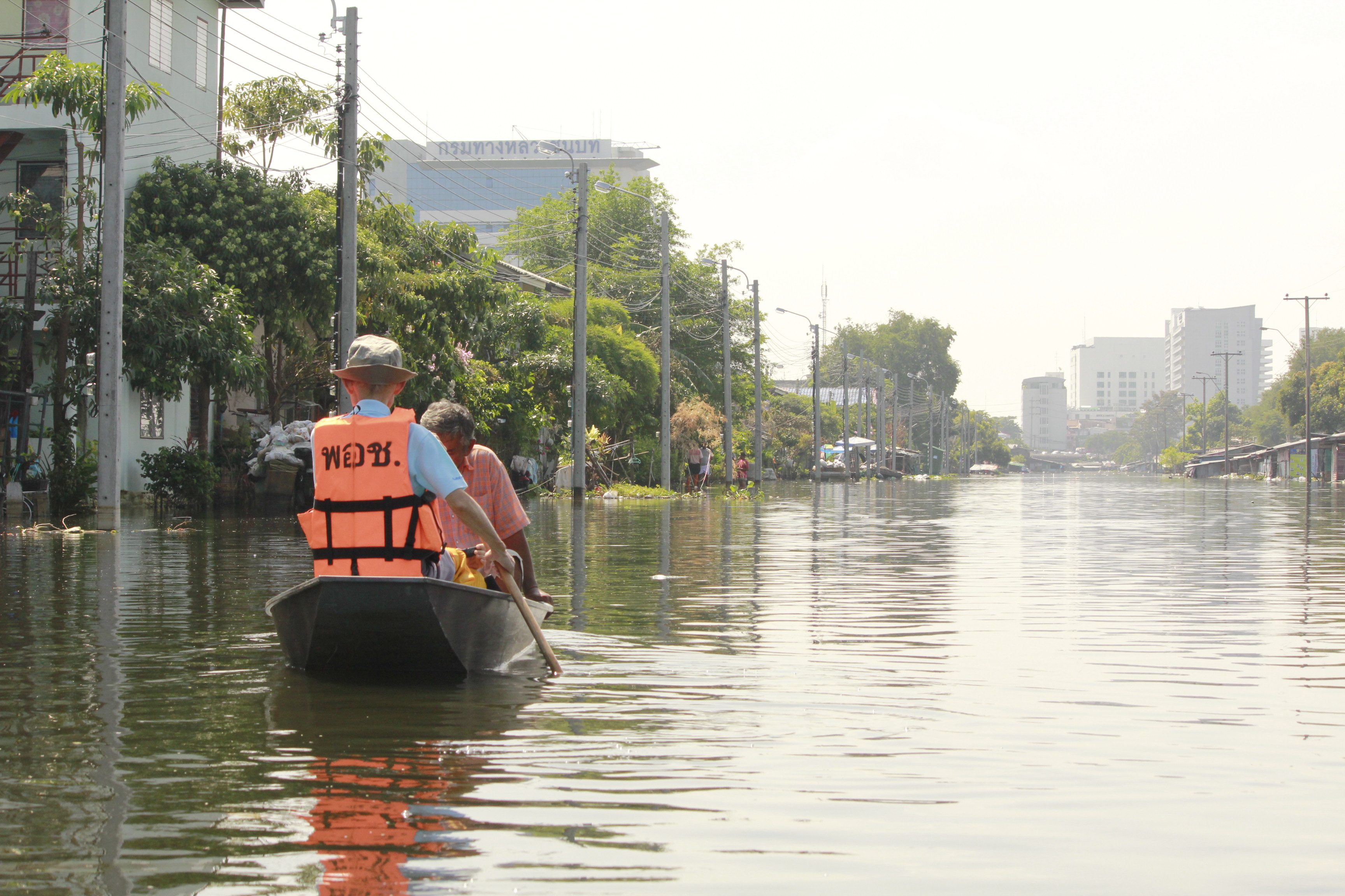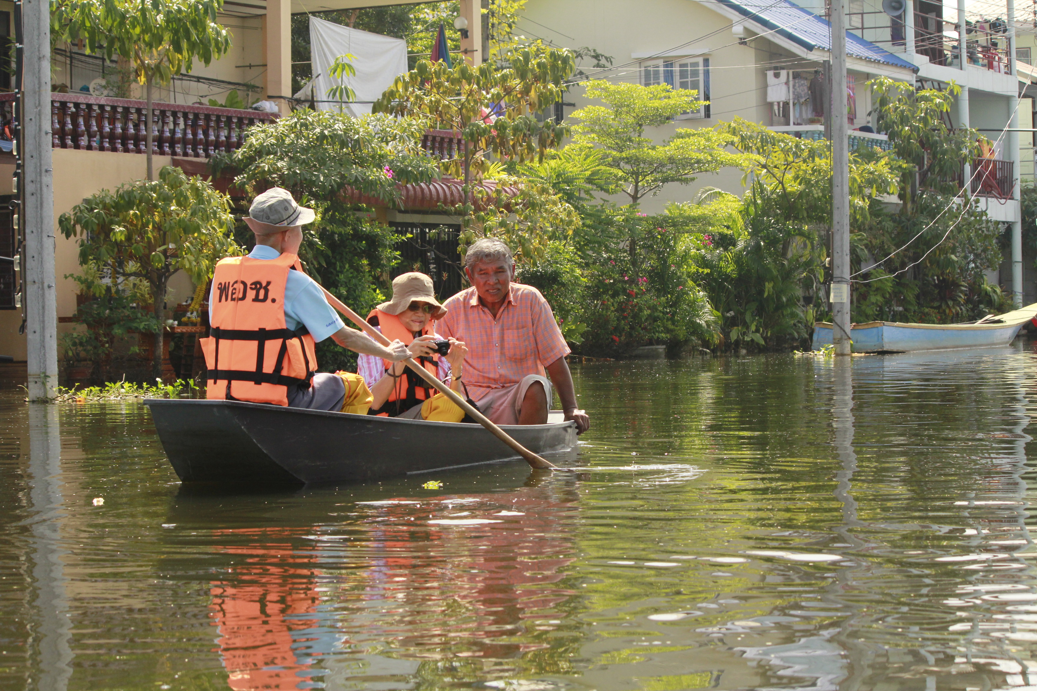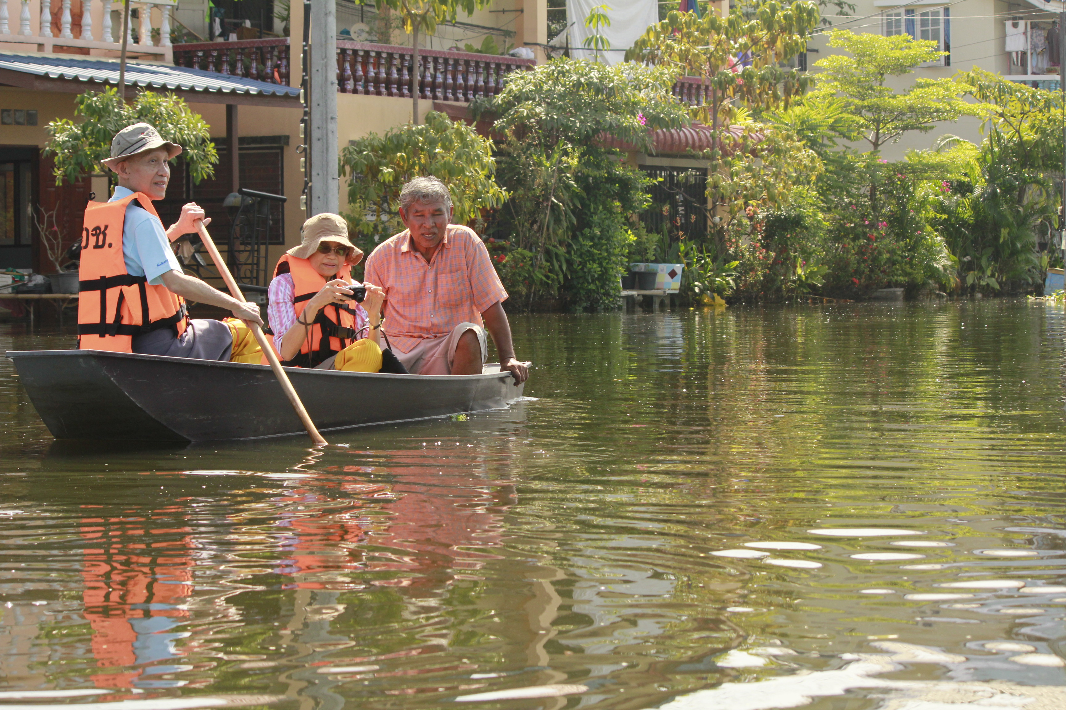อ.ไพบูลย์ วัฒนศิริธรรม ในฐานะประธานมูลนิธิหัวใจอาสา พร้อมด้วยคุณหญิงชฎา วัฒนศิริธรรม ผู้นำชุมชนตำบลท่าอิบุญ อ.หล่มศักดิ์ จ.เพชรบูรณ์ นางทิพย์รัตน์ นพลดารมย์ ผู้อำนวยการ พอช. และเจ้าหน้าที่สถาบันพัฒนาองค์กรชุมชน (องค์การมหาชน) หรือ พอช. เยี่ยมให้กำลังใจชาวชุมชนบางบัว เขตบางเขน กรุงเทพมหานคร ในเหตุการณ์มหาอุทกภัย โดยนำกระแสพระราชดำรัส "เศรษฐกิจพอเพียงจะช่วยให้โลกพ้นวิกฤตได้" พร้อมด้วยหนังสือ-บทความเกี่ยวกับการจัดการภัยพิบัติ การป้องกันและการเตรียมรับมือ แพไม้ไผ่ น้ำดื่ม และอีเอ็มบอล ไปมอบให้ด้วย