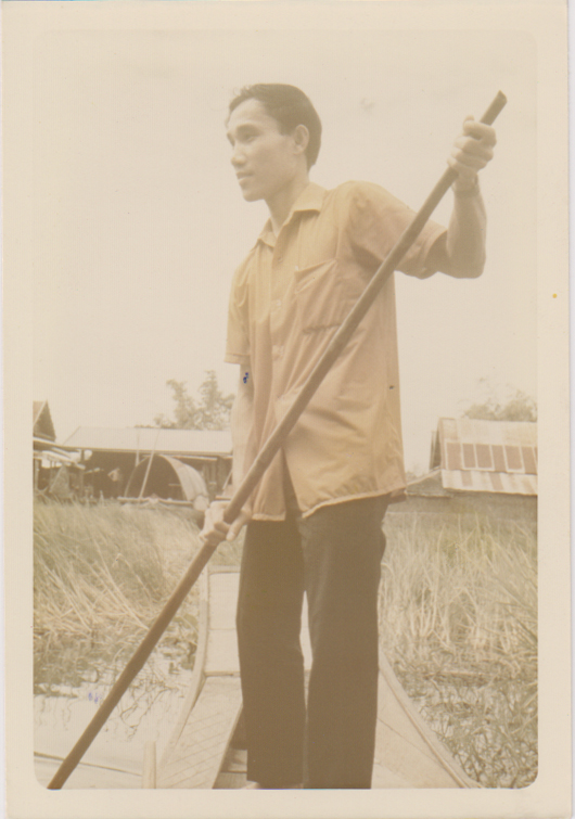 ถ่อเรือในบริเวณบ้านนาคู (บ้านเกิด) น้ำตื้นจึงใช้วิธีถ่อเรือได้
