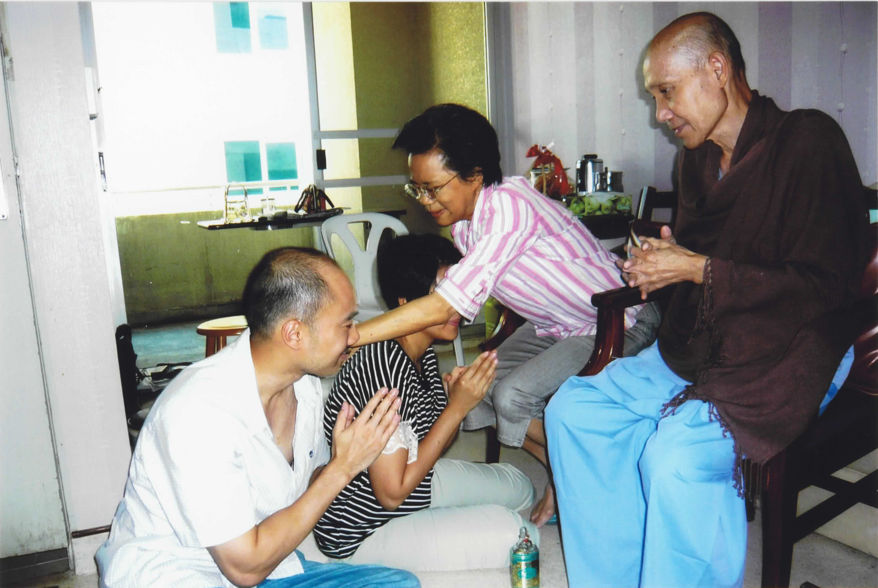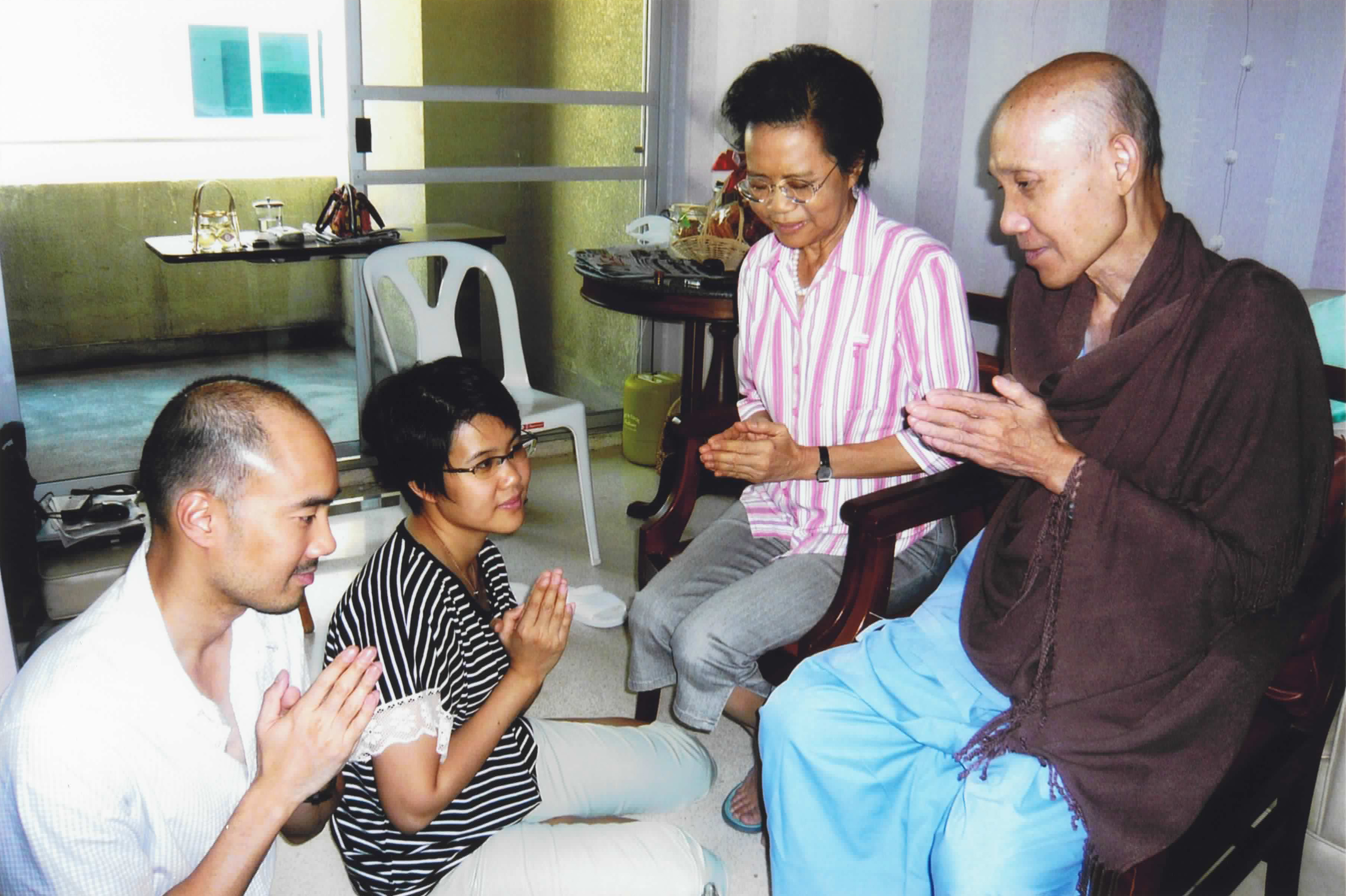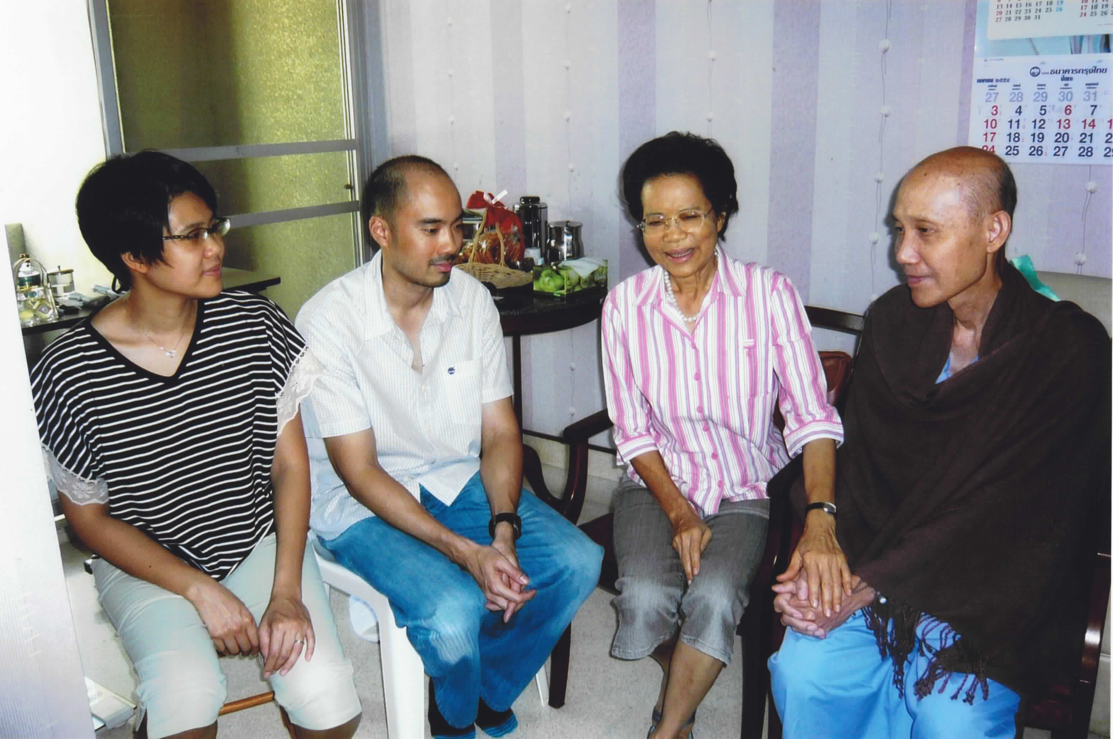 ชมพรรณ กุลนิเทศ (ปิ๊บ - ลูกสาว), พิชา วัฒนศิริธรรม (ปั้น - ลูกชาย) รดน้ำขอพร อาจารย์ไพบูลย์ วัฒนศิริธรรม และคุณหญิงชฎา วัฒนศิริธรรม