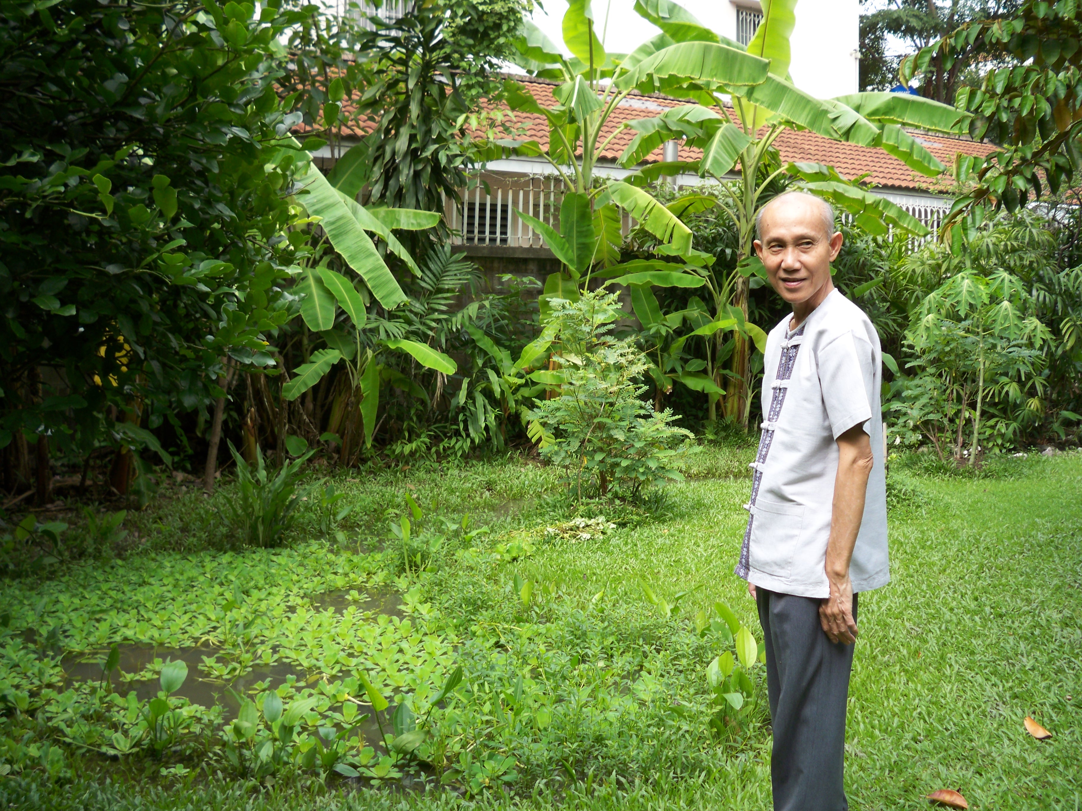 ภาพถ่ายอาจารย์ไพบูลย์ วัฒนศิริธรรม ในสวนที่บ้าน